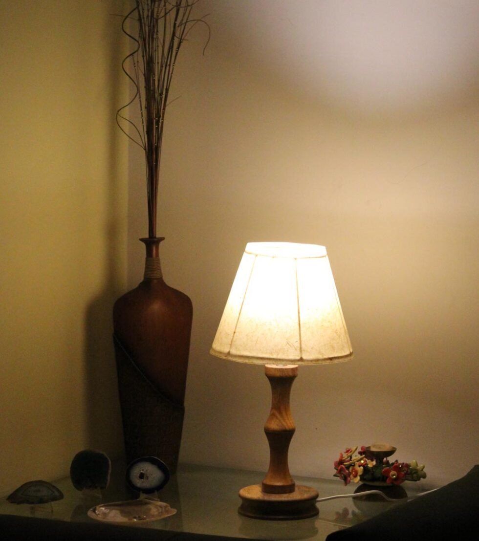 100% Banana Fiber Paper Lampshade With Wooden Base Lamps