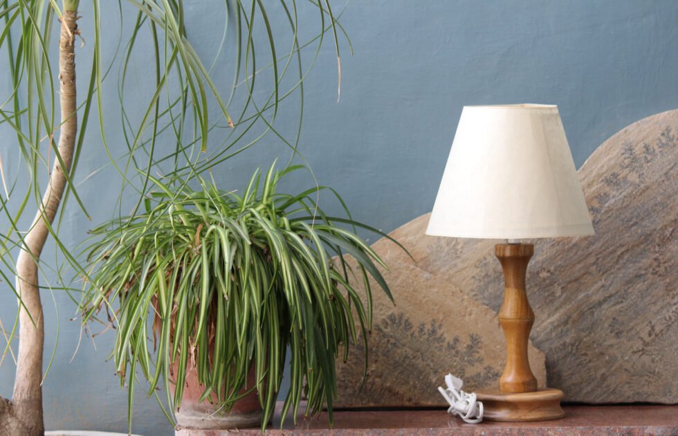 Handcrafted Banana Fiber Paper Lampshade With Wooden Lamp