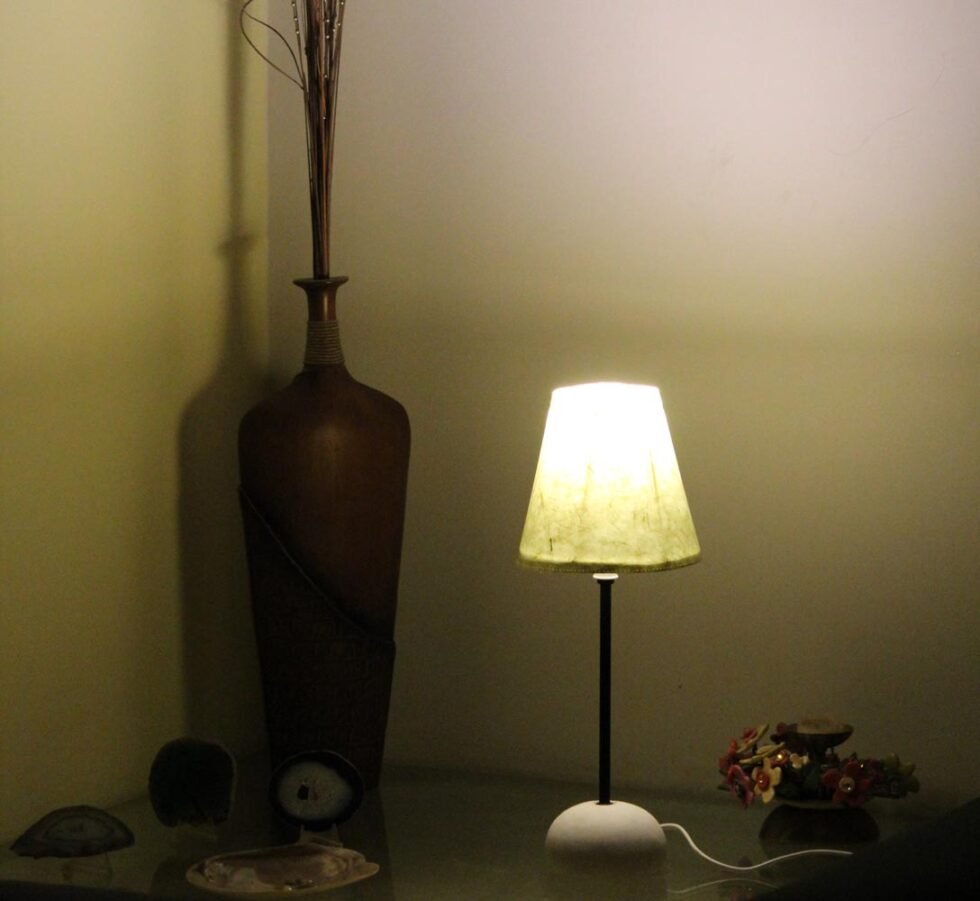 Handcrafted 100% Banana Fiber paper Lampshade with Iron & Marble Base Lamp