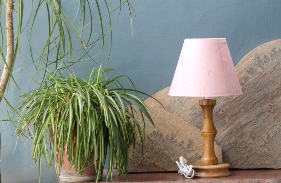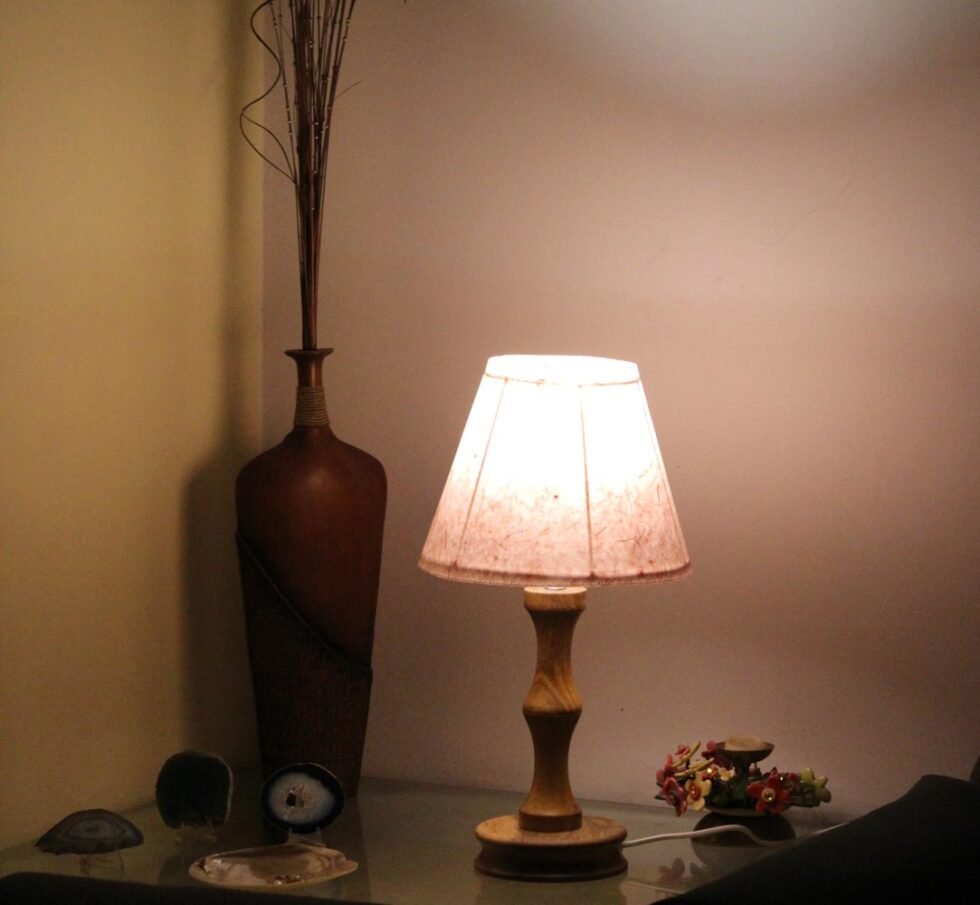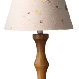 Lampshade from 100% banana fiber organic paper – purely recycled & handmade. A truly aesthetic décor catering to high class taste satisfying environmental concerns. Handcrafted by our premium artisans for the top quality international markets. A thin lining of acetate is given underneath the paper for the durability of the shade! The light shimmering out is so unique and carries a classy theme for any type of room / balcony / garden & bar. Tiny incursions of the dyed banana fiber and the colorful paper release spectacular light around. Shade supported by classy handcrafted wooden stand made of exclusive mango wood -further treated with better finish and carefully polished for the durability. A 2 meter long wire is given to its sturdy wooden base with on / off switch facility.