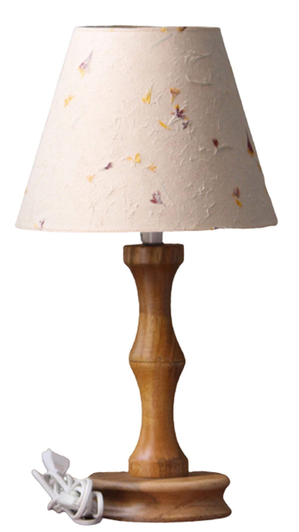 Made from 100% recycled hemp fiber paper, this eco-friendly lampshade casts a unique shimmering light through natural fibers and flower petals. Mounted on a polished mango wood stand with 2-meter wire and switch, it’s a simple, elegant décor piece for any space.
