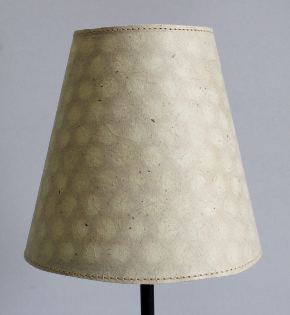 Lampshade from 100% Hemp fiber organic paper together with designed lace paper – purely recycled & handmade. A truly aesthetic décor catering to high class taste satisfying environmental concerns. Handcrafted by our premium artisans for the top quality international markets. A thin lining of acetate OR stiff cotton fabric is given underneath the paper for the durability of the shade! The light shimmering out is so unique and carries a classy theme for any type of room / balcony / garden & bar. Light filtering out from the design pattern of the lace paper release spectacular formation of rays around. ( Height – 15 cm / Lower Diemeter 15 cm / Upper Diemeter 10 cm.)