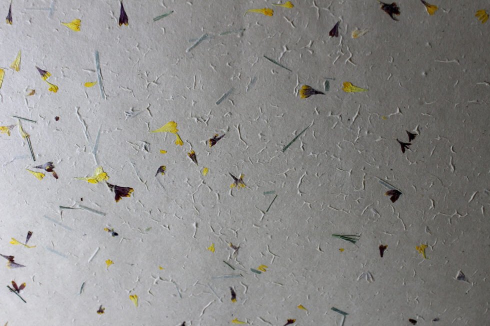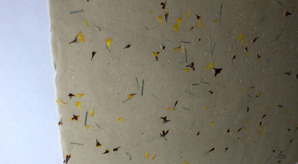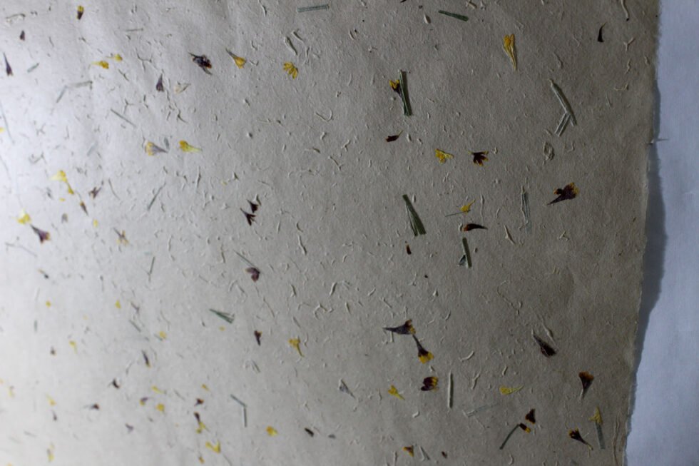 80 GSM Ivory color ‘Garden Sheet’ from 100% Lokta fiber. With uneven surface and waves all around on the one side of the sheet, paper looks exquisite and rich for multiple uses like gift wrap, art & craft, notebook & boxes covers and even premium shopping bag. Flower petals and fine chopped grass are mottled into the pulp before forming the Garden Sheet.