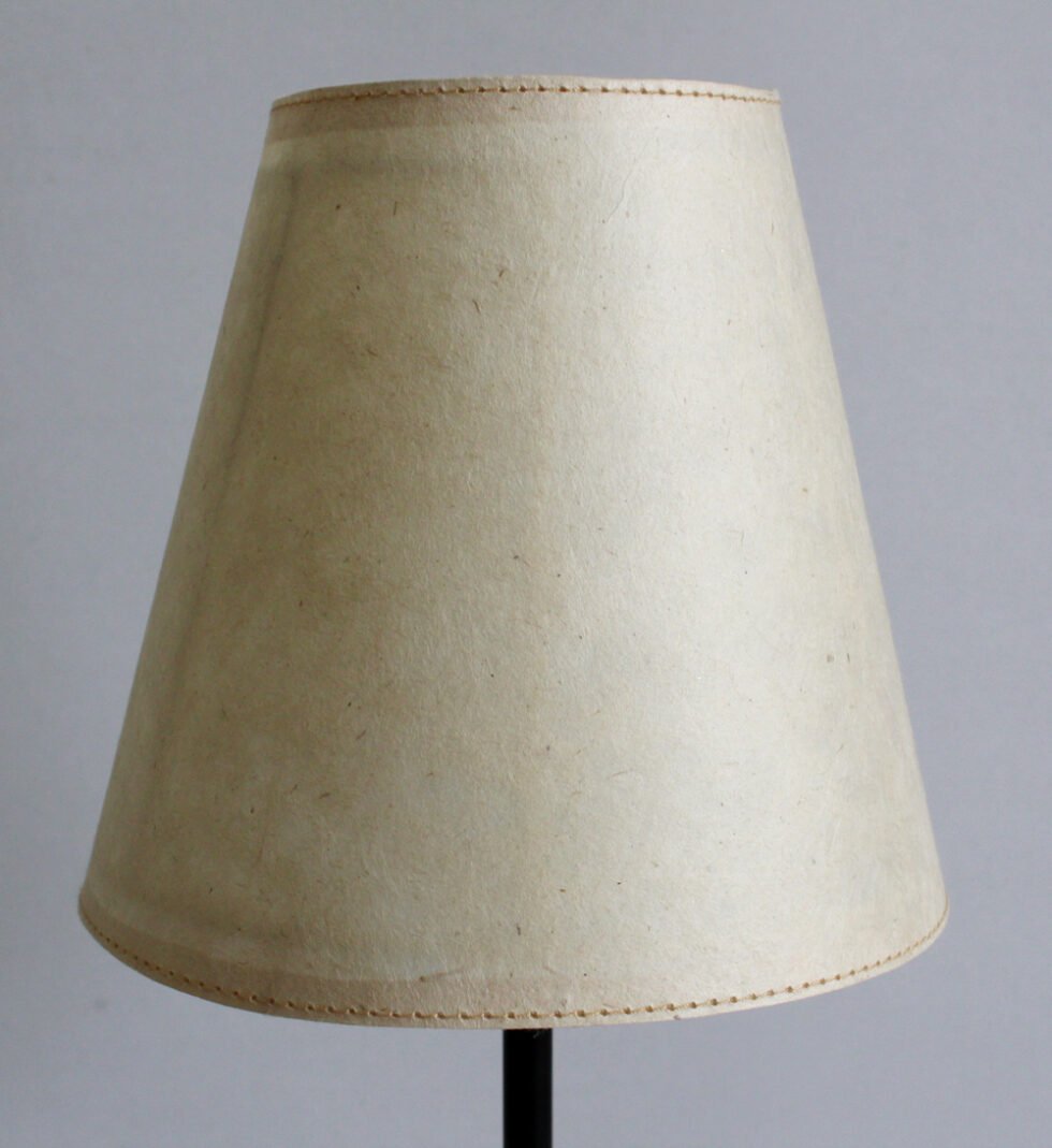 Lampshade from 100% Lokta fiber organic paper – purely recycled & handmade. A truly aesthetic décor catering to high class taste satisfying environmental concerns. Handcrafted by our premium artisans for the top quality international markets. A thin lining of acetate OR stiff cotton fabric is given underneath the paper for the durability of the shade! The light shimmering out is so unique and carries a classy theme for any type of room / balcony / garden or a bar. Tiny incursions of the dyed or natural Lokta fiber and its paper is having ancient Buddhist / Himalayan history and release spectacular light around. ( Height – 15 cm / Lower Diemeter 15 cm / Upper Diemeter 10 cm.)