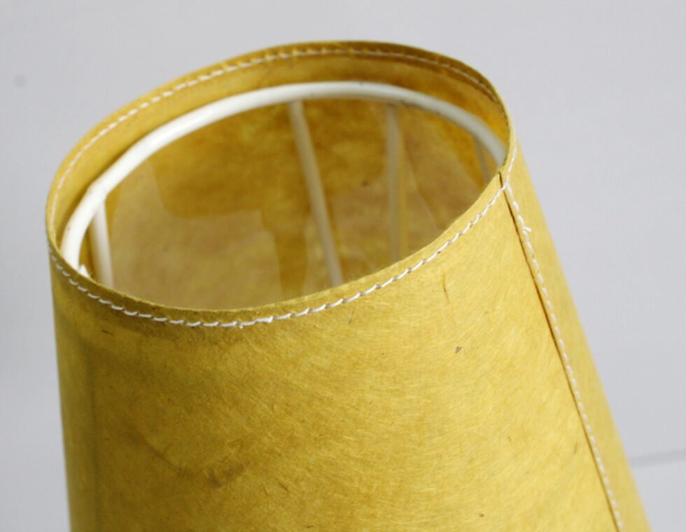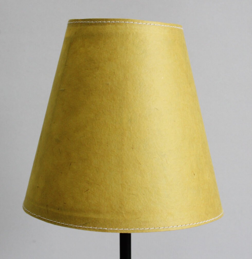 Lampshade from 100% Lokta fiber organic paper – purely recycled & handmade. A truly aesthetic décor catering to high class taste satisfying environmental concerns. Handcrafted by our premium artisans for the top quality international markets. A thin lining of acetate OR stiff cotton fabric is given underneath the paper for the durability of the shade! The light shimmering out is so unique and carries a classy theme for any type of room / balcony / garden or a bar. Tiny incursions of the dyed or natural Lokta fiber and its paper is having ancient Buddhist / Himalayan history and release spectacular light around. ( Height – 15 cm / Lower Diemeter 15 cm / Upper Diemeter 10 cm.)