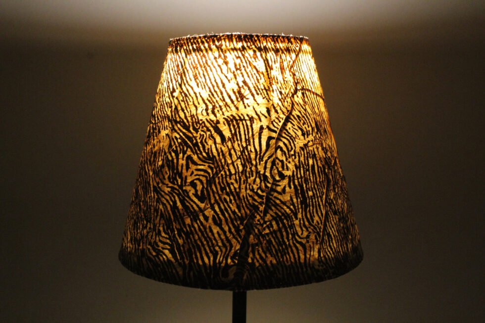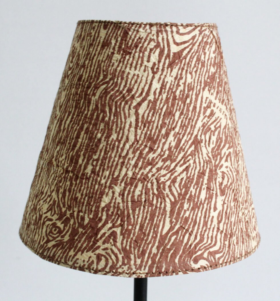 Lampshade from 100% Lokta fiber organic paper – purely recycled & handmade. A truly aesthetic décor catering to high class taste satisfying environmental concerns. Handcrafted by our premium artisans for the top quality international markets. A thin lining of acetate OR stiff cotton fabric is given underneath the paper for the durability of the shade! The light shimmering out is so unique and carries a classy theme for any type of room / balcony / garden or a bar. Tiny incursions of the dyed or natural Lokta fiber and its bark design printed paper is having ancient Buddhist / Himalayan history and release spectacular light around. ( Height – 15 cm / Lower Diemeter 15 cm / Upper Diemeter 10 cm.)