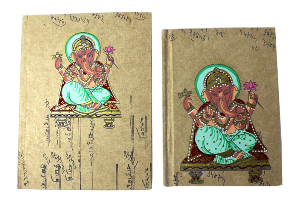 Vintage-style notebooks on recycled handmade paper with multicolour Ganesh front, elephant back, and 48 sheets of smooth, bleed-proof, acid-free paper. Perfect for writing, journaling, or gifting.