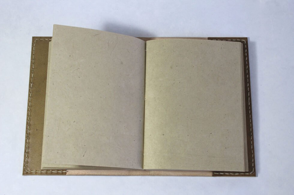 Hand stitched goat leather refillable journal in antique color and finish. Hand crafted journal with hemp leaf and roots embossed on the front cover. Inside is 100 sheets / 200 pages of ‘Hemp Paper’ in natural shade of 70 GSM. Excellent paper to write upon which never bleeds with ink or even in painting! Truly recycled paper, handmade paper, wood free paper – with Ph level 7 or higher – its an acid free paper too!