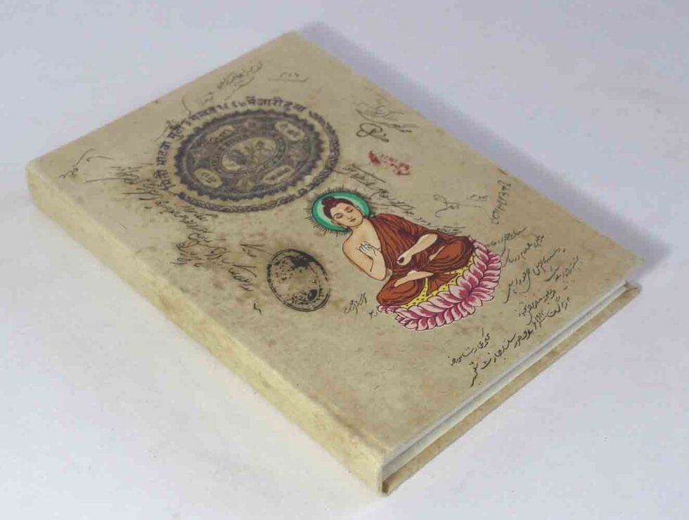 Antique finish paper with antique scripts, stamps and symbol printed on the paper as cover. Hard cover notebook with 48 sheets / 96 pages of recycled handmade cotton paper. Hand bound with specialist artisans while the paper is wood free, acid free and never bleeds while using ink pen. Wonderful green life style product – can be branded or customized and excellent teen for personal / corporate gift