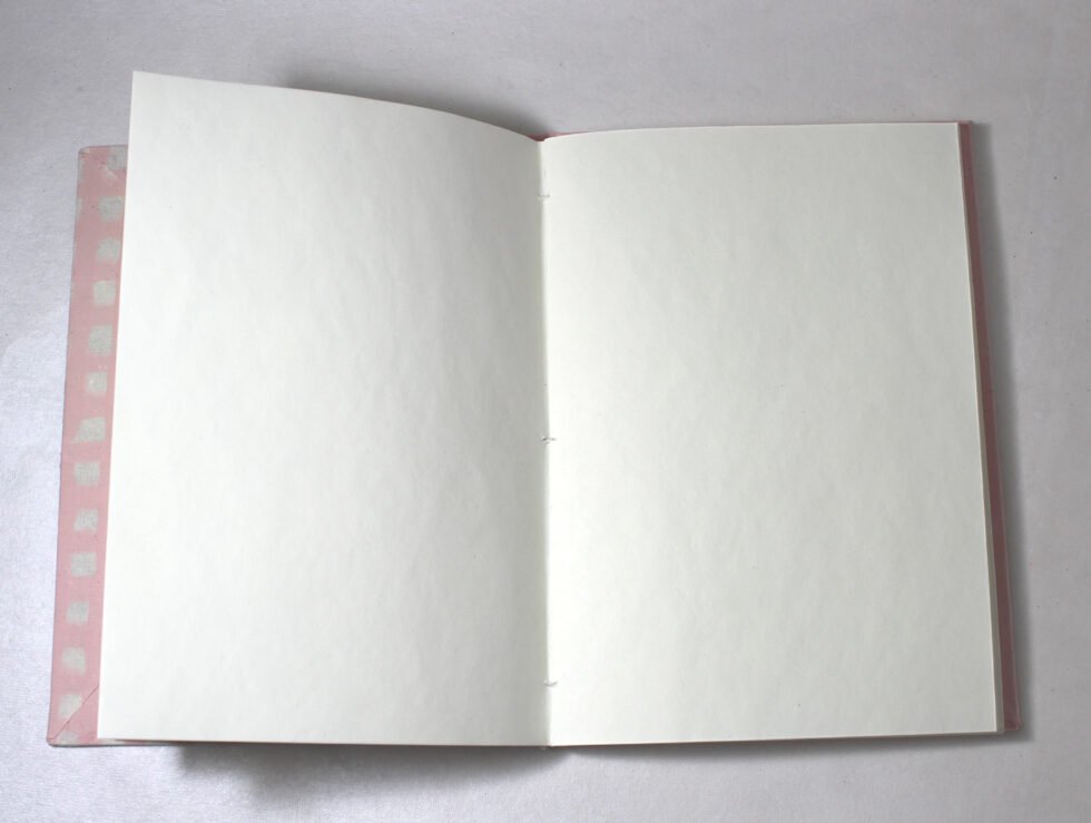 Batik paper pattern with pink checks as cover. hard cover notebook with 48 sheets / 96 pages of handmade recycled cotton paper. Hand bound with specialist artisans while the paper is wood free, acid free and never bleeds while using ink pen. Wonderful green life style product – can be branded or customized and excellent teen for personal / corporate gift!