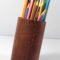 Strong natural leather + 100% handmade – guarantee of a quality product! Terracotta leather first dyed by the application of pigments carried through water on the smoother side of the leather. It is 100% full grain leather, while the polishing effect gives the product slightly stiff yet a glamorous shine! A very useful, aesthetic and beautiful present or product as pen stand, a kind of corporate gift! Leather with the love of labour and craftsmanship unlike conventional tannery dyed leather!