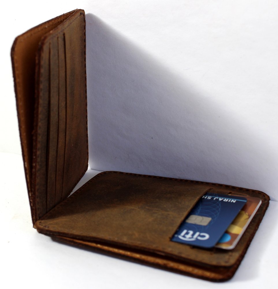 Credit card holder is an easy solution for storing the credit cards. Strong natural leather + 100% handmade – guarantee of a quality product! Oil pull up tannery leather with abrasion effect and antique looks. It is 100% full grain leather, while the rugged & gypsy effect gives the product slightly stiff yet a vintage look! A very useful, aesthetic and beautiful present or product! Leather with the love of labour and craftsmanship unlike conventional tannery dyed leather!