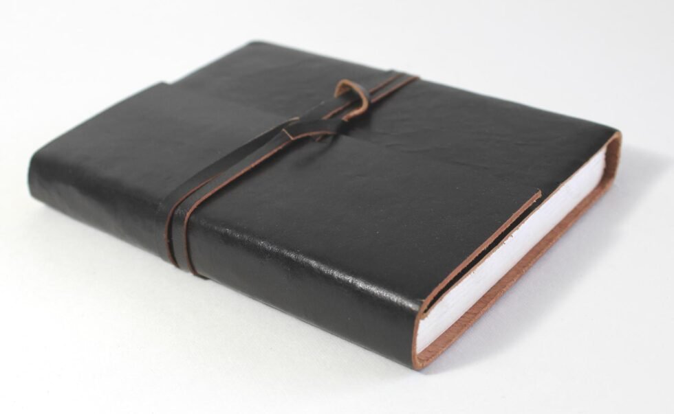 Fine quality of goat TC leather. Hand bound journal with 90 sheets / 180 pages of recycled cotton handmade papers. Absolutely wood free, acid free. Does not bleed when using ink pen.