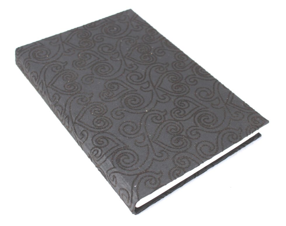 Handcrafted artisan notebook with a recycled handmade paper cover and 96 pages of smooth, bleed-proof, acid-free paper. Beautifully designed and perfect for gifting.