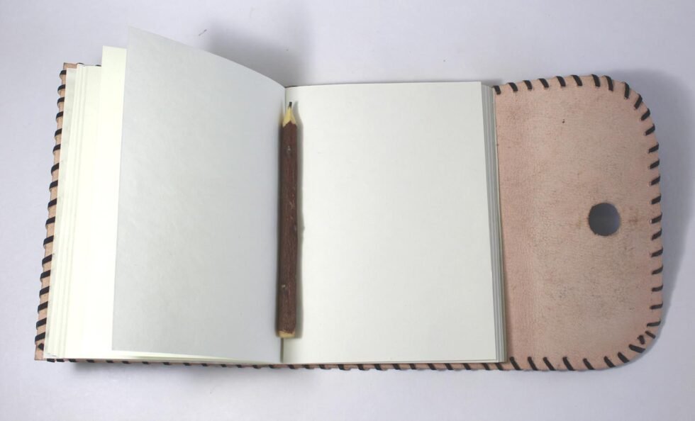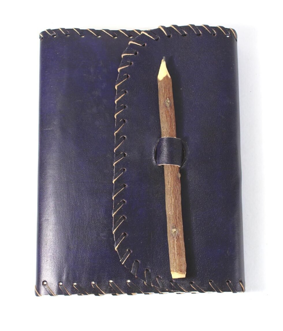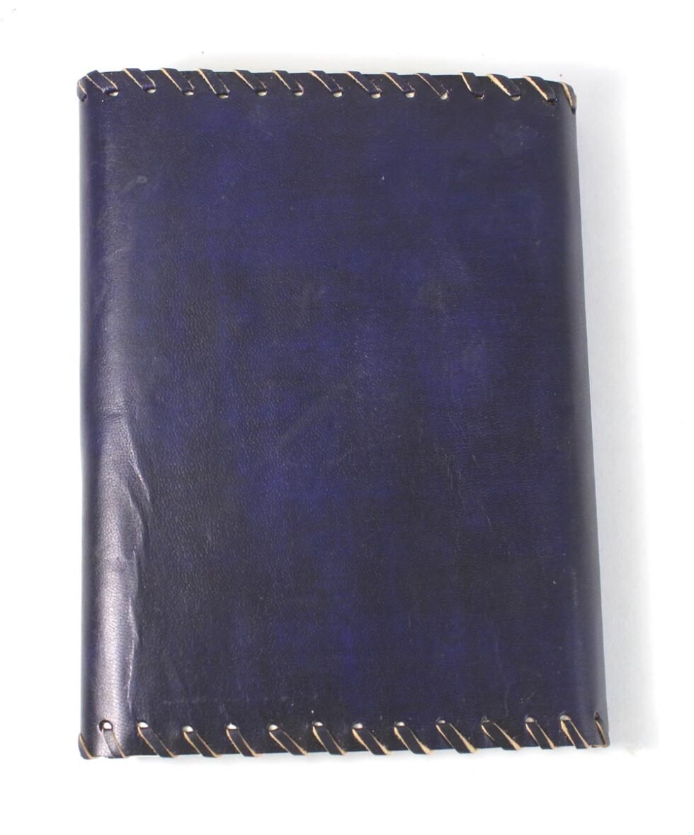 Ethnic style goat leather journal with 72 sheets / 144 pages of recycled cotton handmade paper. The gypsy looking journal matches with the travel theme and serves a good purpose while writing on a vacation or trip…capturing all your moods and feelings inside it. The paper is smooth, absolutely wood free, acid free and never bleeds even with ink pen.