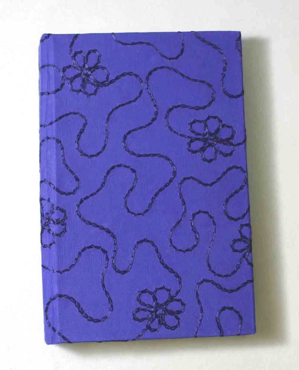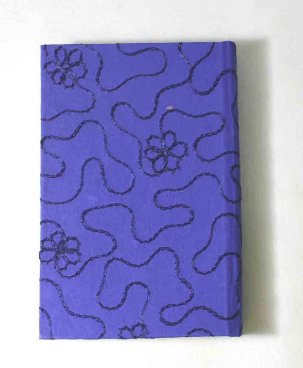 Blue color sheet with matching silk yarn embroidery as cover. Hard cover notebook with 48 sheets / 96 pages of handmade recycled cotton paper. Hand bound with specialist artisans while the paper is wood free, acid free and never bleeds while using ink pen. Wonderful green life style product – can be branded or customized and excellent teen for personal / corporate gift!Â