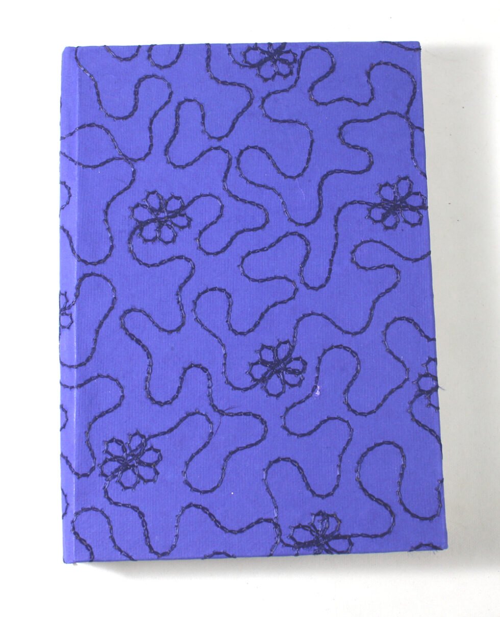 Blue color sheet with matching silk yarn embroidery as cover. Hard cover notebook with 48 sheets / 96 pages of handmade recycled cotton paper. Hand bound with specialist artisans while the paper is wood free, acid free and never bleeds while using ink pen. Wonderful green life style products – can be branded or customized and excellent teen for personal / corporate gift!   Â
