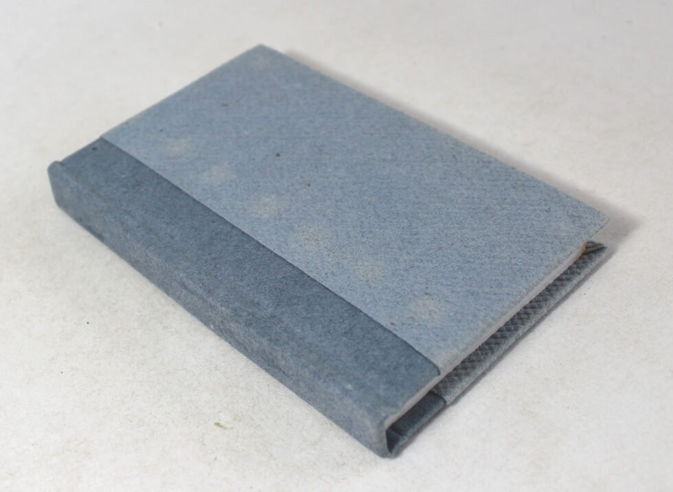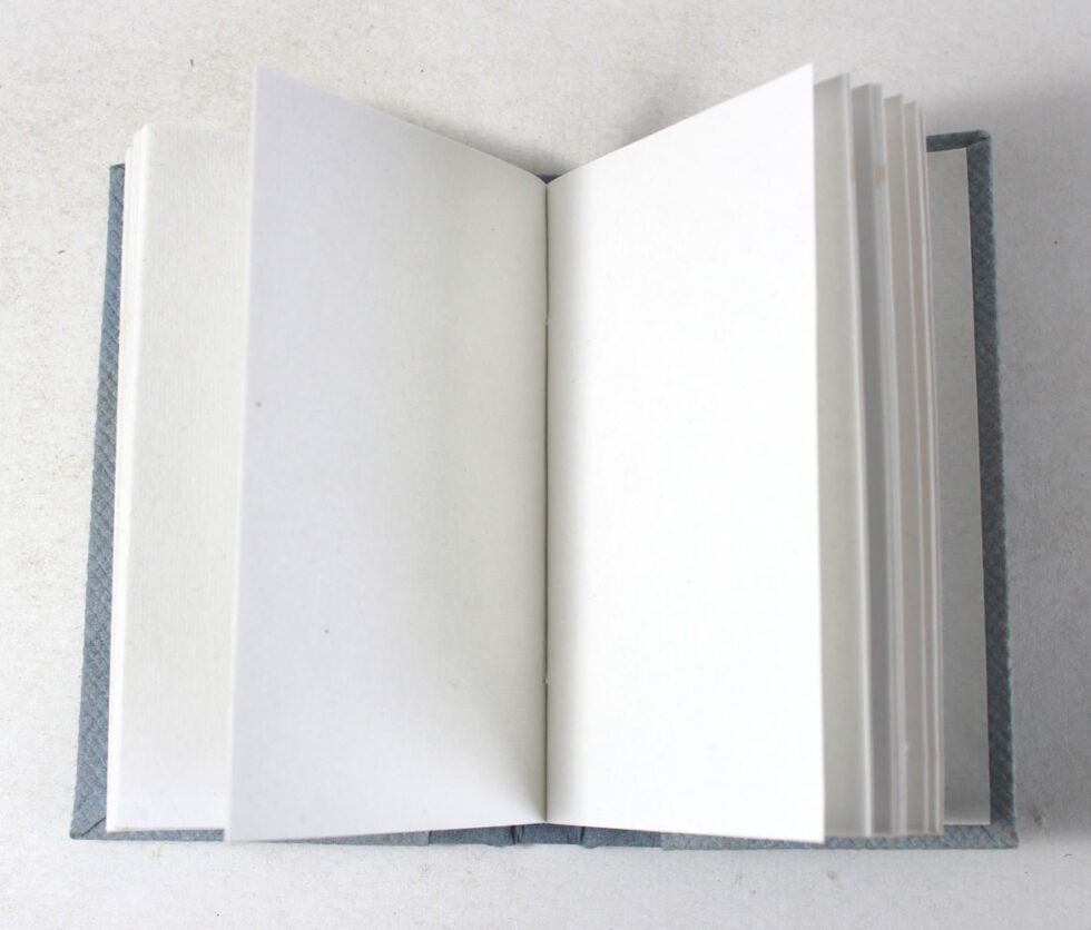 Blue denim (jeans) textured paper as cover, with a plain denim paper spine in contrast. Hard cover notebook with 48 sheets / 96 pages of handmade recycled cotton paper. Hand bound with specialist artisans while the paper is wood free, acid free and never bleeds while using ink pen. Wonderful green life style product – can be branded or customized and excellent teen for personal / corporate gift!  Â