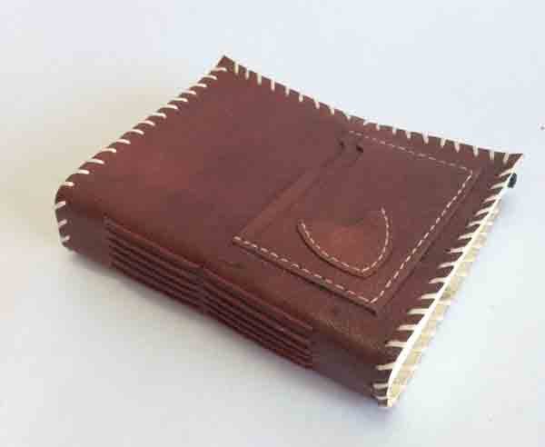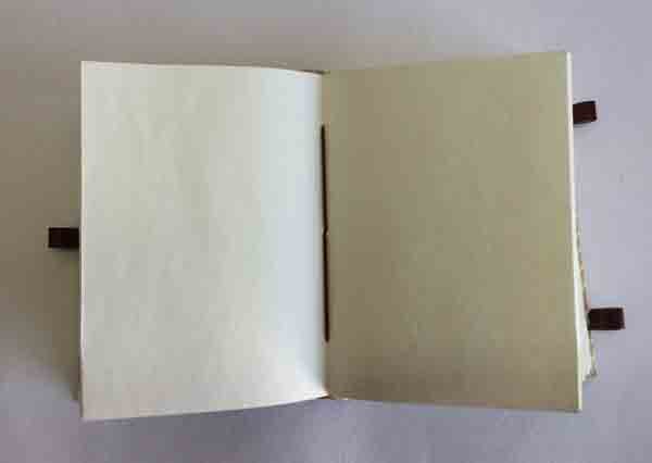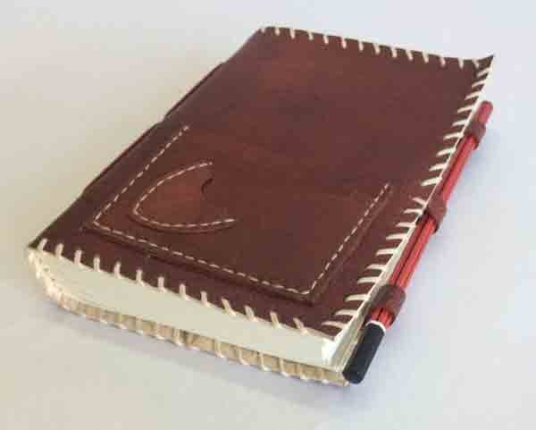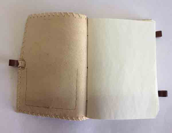 Ethnic style goat leather journal with 120 sheets / 240 pages of recycled cotton handmade paper. The gypsy looking journal matches with the travel theme and serves a good purpose while writing on a vacation or trip…capturing all your moods and feelings inside it. The paper is smooth, absolutely wood free, acid free and never bleeds even with ink pen.