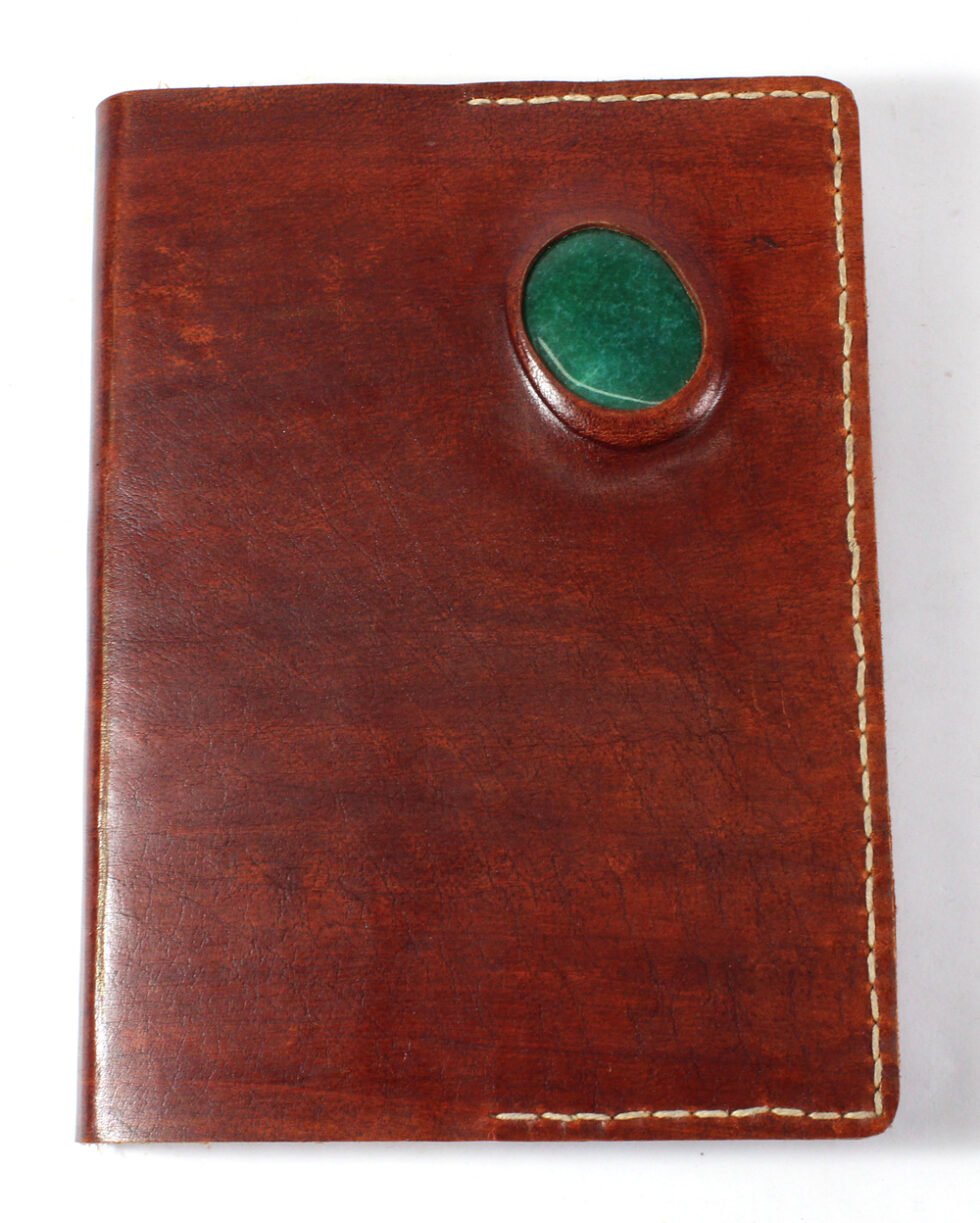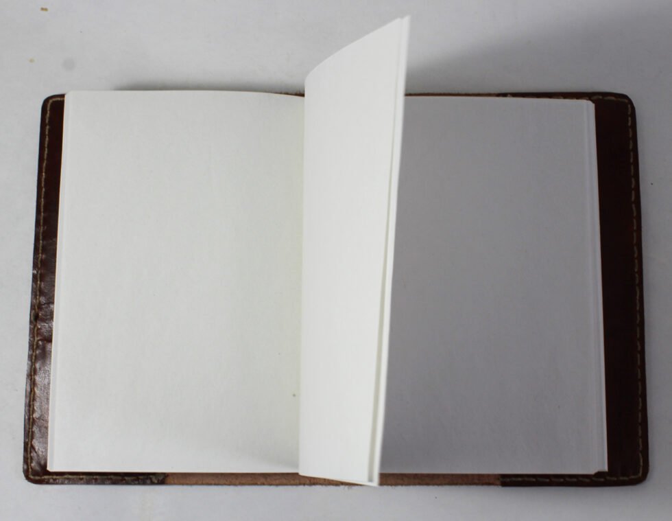 Ethnic style goat leather journal with 72 sheets / 144 pages of recycled cotton handmade paper. The gypsy looking journal matches with the travel theme and serves a good purpose while writing on a vacation or trip…capturing all your moods and feelings inside it. The paper is smooth, absolutely wood free, acid free and never bleeds even with ink pen.