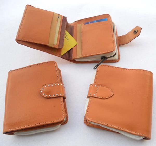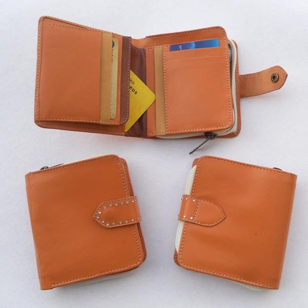 Be the first to review “Brown leather wallet with multiple pockets inside outside a leather stripe for the closure.”