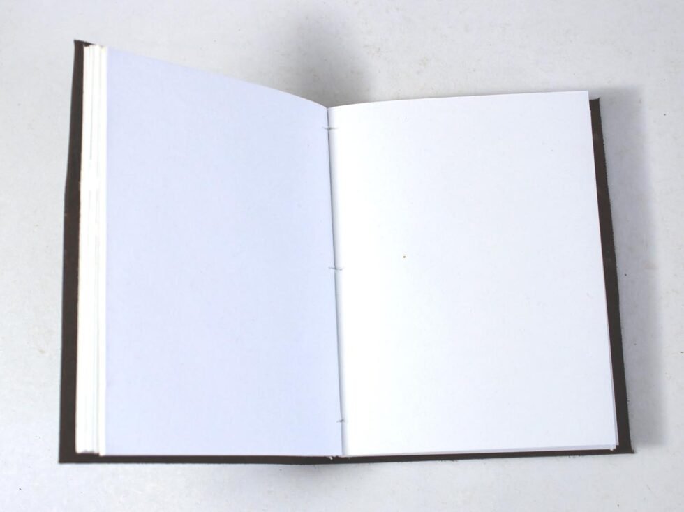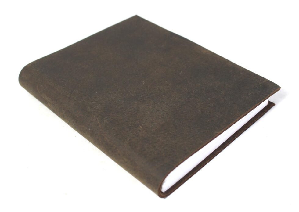Oil pull-up buffalo leather journal with a thick, rich, and soft antique finish. Gypsy-style hand-bound design with a plain spine. Contains 72 sheets (144 pages) of recycled cotton handmade paper – wood-free, acid-free, and ink-friendly.