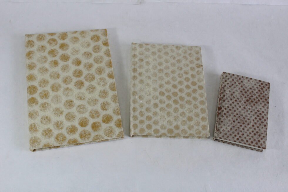 Solid cover notebook with lovely cream color handmade recycled cotton paper 48 sheets / 96 pages inside. Outside is the cardboard cover decorated with lace paper on front and a normal contrasting paper on its back giving it an exquisite look. Paper is acid free, wood free and does not bleed with the ink pen .