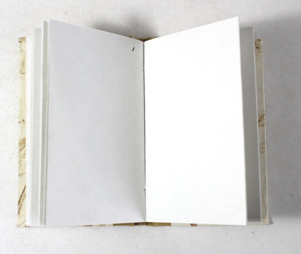 Cream color paper having real leaves impressions all over as cover. Hard cover notebook with 48 sheets / 96 pages of handmade recycled cotton paper. Hand bound with specialist artisans while the paper is wood free,acid free, and never bleeds while using ink pen. Wonderful green life style product – can be branded or customized and excellent teen for personal / corporate gift!   Â