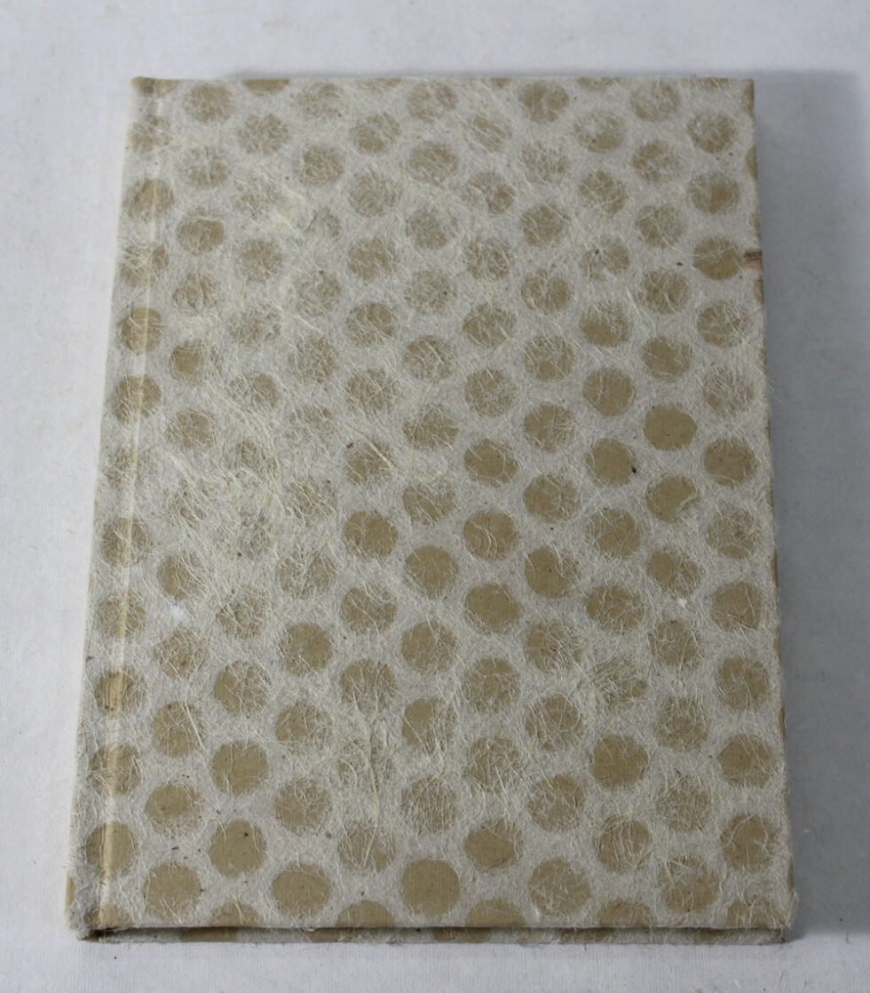 Solid cover notebook with lovely cream color handmade recycled cotton paper 48 sheets / 96 pages inside. Outside is the cardboard cover decorated with lace paper on front and a normal contrasting paper on its back giving it an exquisite look. Paper is acid free, wood free and does not bleed with the ink pen .