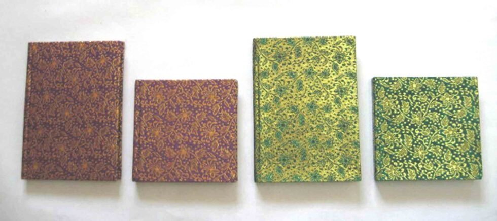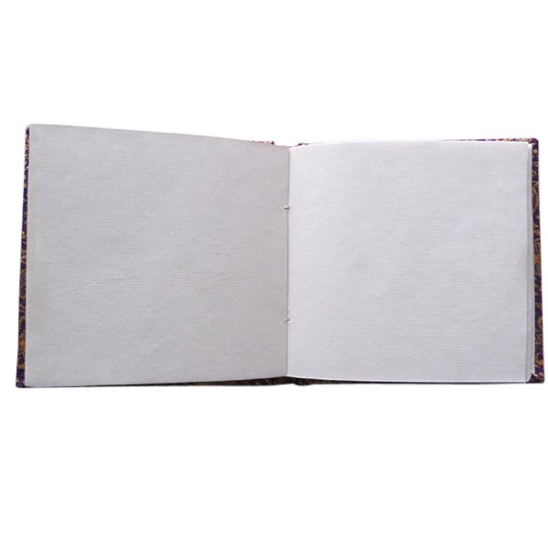 Cream colour paper with textile on the hard cover. Hard cover notebook with 48 sheets / 96 pages of recycled handmade cotton paper. Hand bound with specialist artisans while the paper is wood free, acid free and never bleeds while using ink pen. Wonderful green life style product – can be branded or customized and excellent item for personal / corporate gift!