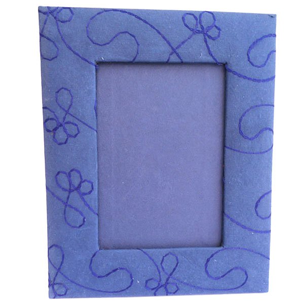 Photo frame made of exclusively embroidered cotton recycled paper used ornament ally on plain matching recycled cotton handmade paper. Further, foam & cardboard is used to shape it up. A lovely ‘Green Life Style’ product for home decoration. Acetate is provided in the middle to protect photo.