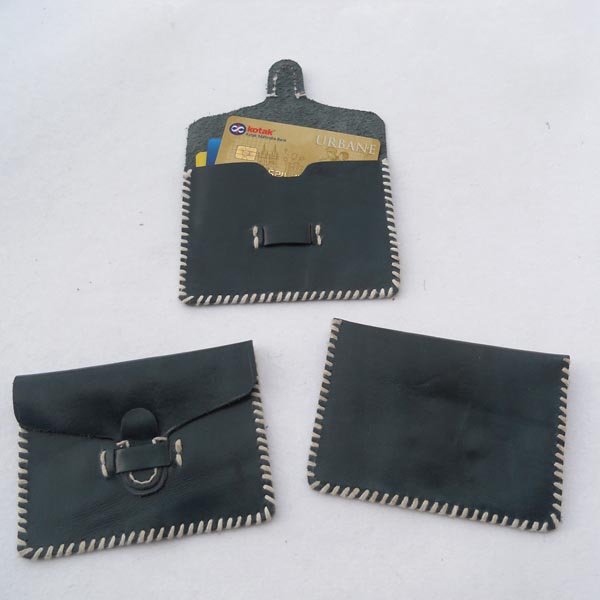 Credit card holder with hand stitching & hand sewing made of genuine leather in dull green color.
