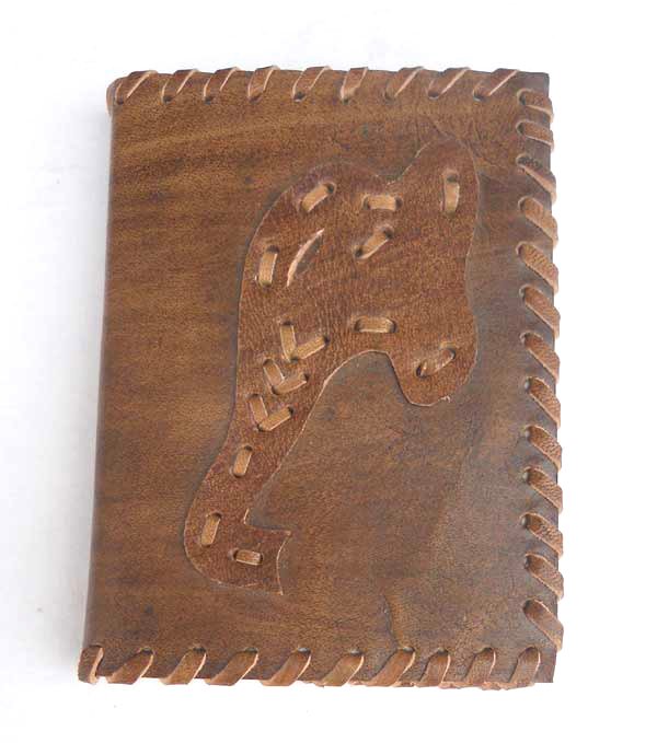Ethnic style goat leather journal with 72 sheets / 144 pages of recycled cotton handmade paper. The gypsy looking journal matches with the travel theme and serves a good purpose while writing on a vacation or trip…capturing all your moods and feelings inside it. The paper is smooth, absolutely wood free, acid free and never bleeds even with ink pen.