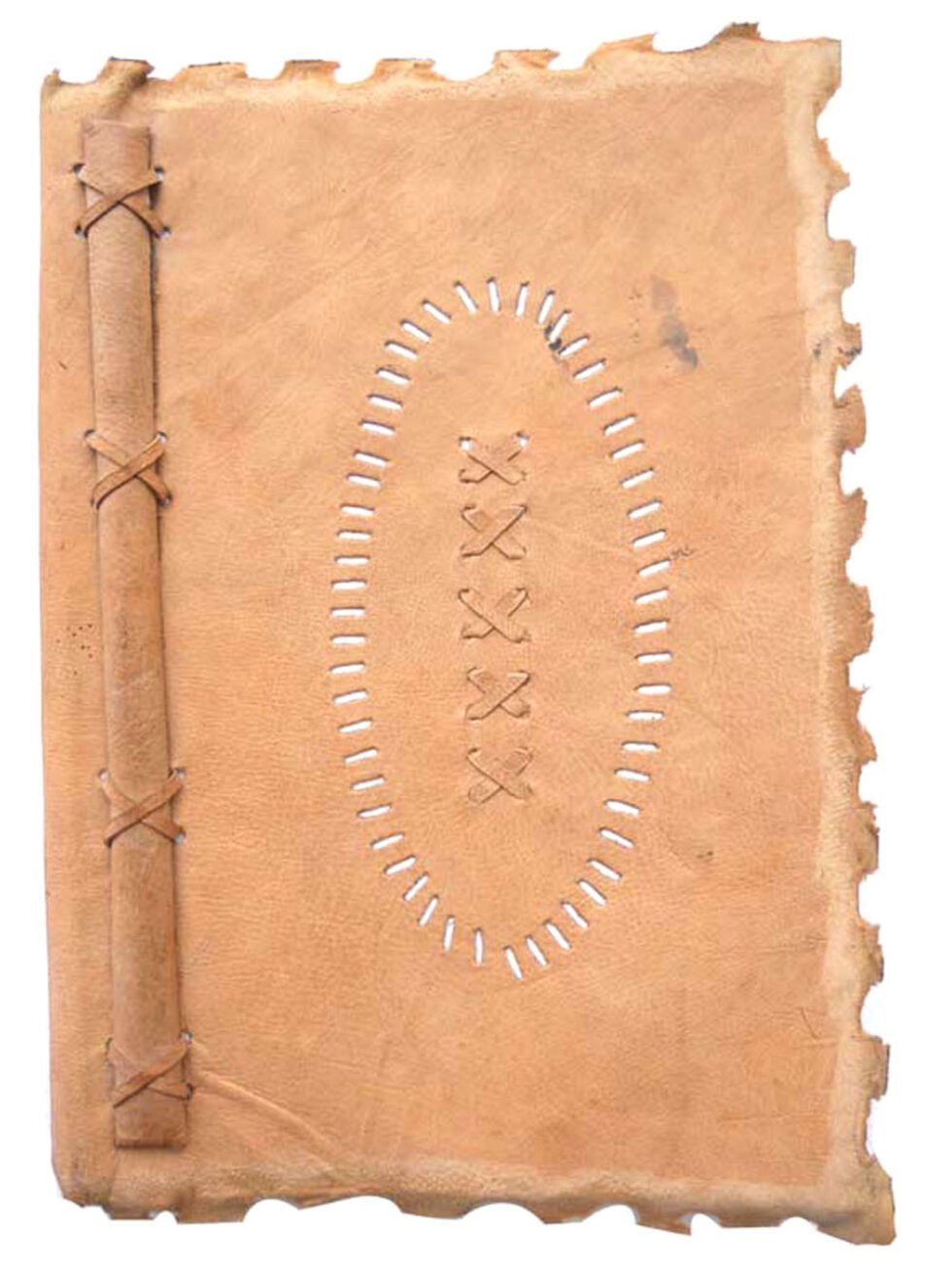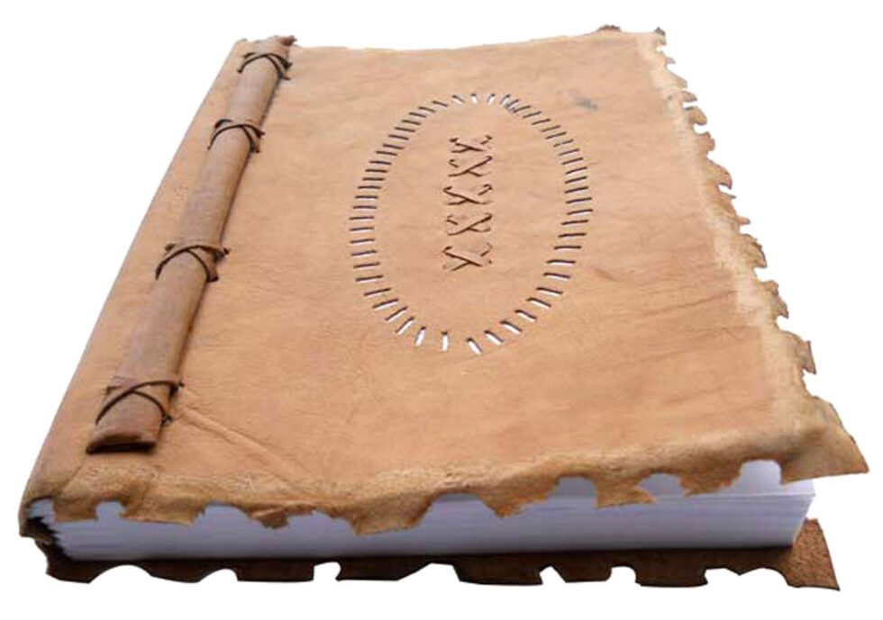 Ethnic style goat leather journal with 72 sheets / 144 pages of recycled cotton handmade paper. The gypsy looking journal matches with the travel theme and serves a good purpose while writing on a vacation or trip…capturing all your moods and feelings inside it. The paper is smooth, absolutely wood free, acid free and never bleeds even with ink pen.