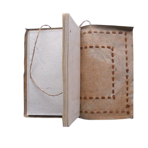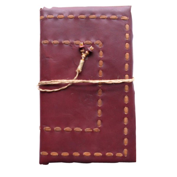 Ethnic style goat leather journal with 48 sheets / 96 pages of recycled cotton handmade paper. The gypsy looking journal matches with the travel theme and serves a good purpose while writing on a vacation or trip…capturing all your moods and feelings inside it. The paper is smooth, absolutely wood free, acid free and never bleeds even with ink pen.