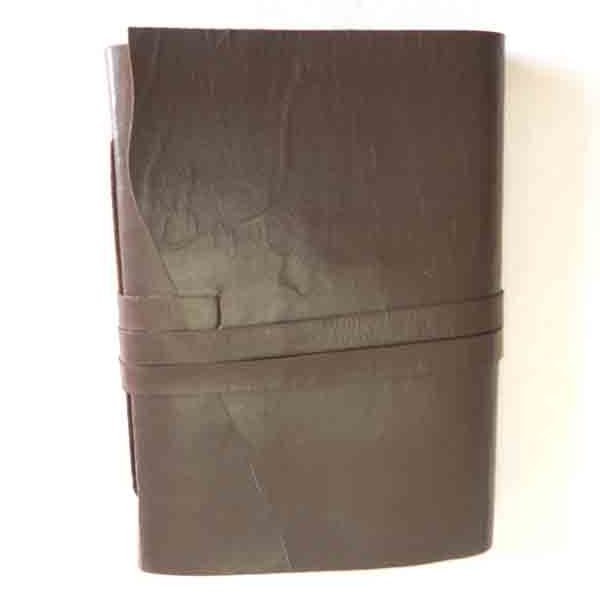 Ethnic style goat leather journal with 80 sheets / 160 pages of recycled cotton handmade paper. The gypsy looking journal matches with the travel theme and serves a good purpose while writing on a vacation or trip…capturing all your moods and feelings inside it. The paper is smooth, absolutely wood free, acid free and never bleeds even with ink pen.
