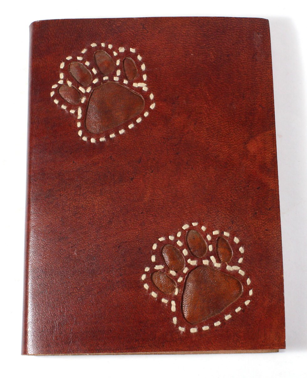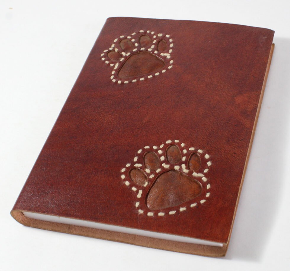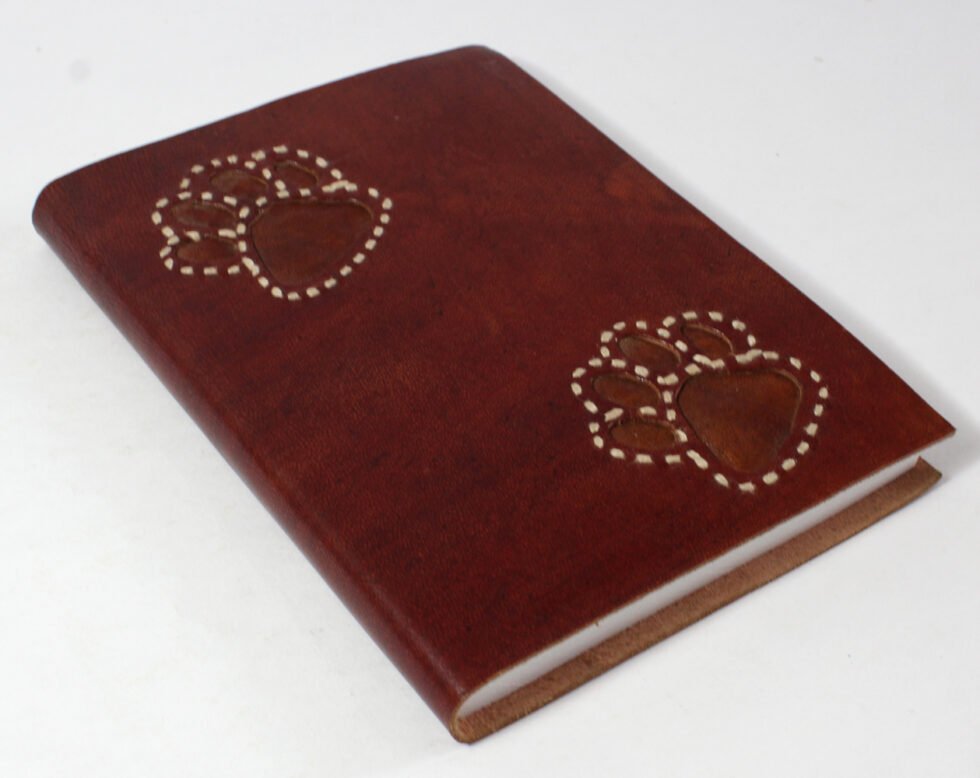 Ethnic style goat leather journal with 72 sheets / 144 pages of recycled cotton handmade paper. The gypsy looking journal matches with the travel theme and serves a good purpose while writing on a vacation or trip…capturing all your moods and feelings inside it. The paper is smooth, absolutely wood free, acid free and never bleeds even with ink pen.