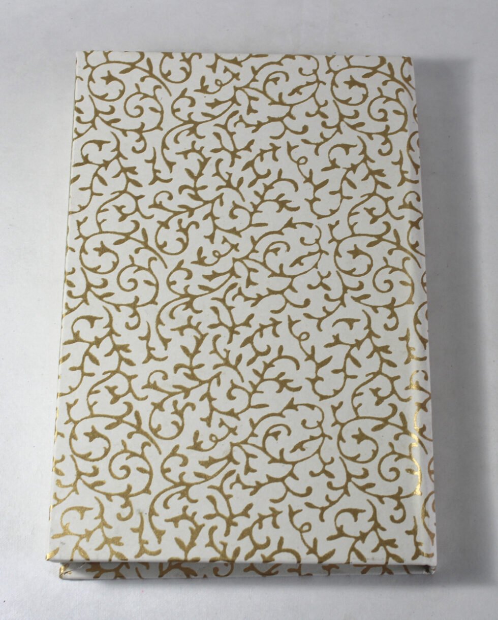 Handmade hand crafted notebook by premium artisans. Exclusive job work done on recycled handmade paper as cover. Inside, 48 sheets / 96 pages of cream colour smooth paper. Lovely paper to write upon, totally wood free, acid free and never bleeds even when written upon by an ink / fountain pen. A beautiful hand crafted notebook with multiple prints / job works on cover paper to make it a beautiful present for many occasions.