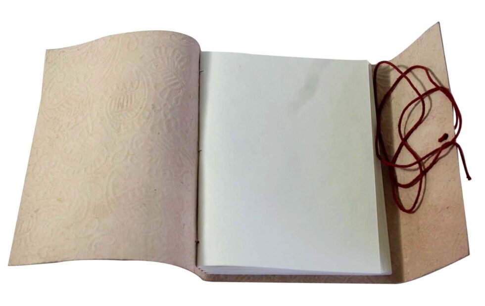 Fine quality of goat TC leather. Hand crafted refillable leather journal with 48 sheets / 96 pages of recycled cotton handmade papers. Absolutely wood free, acid free. Does not bleed when using ink pen. Can be a guest book as well.