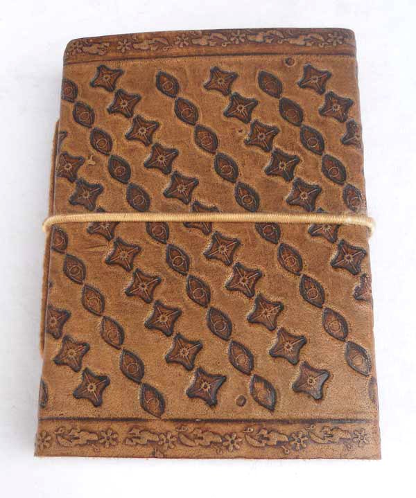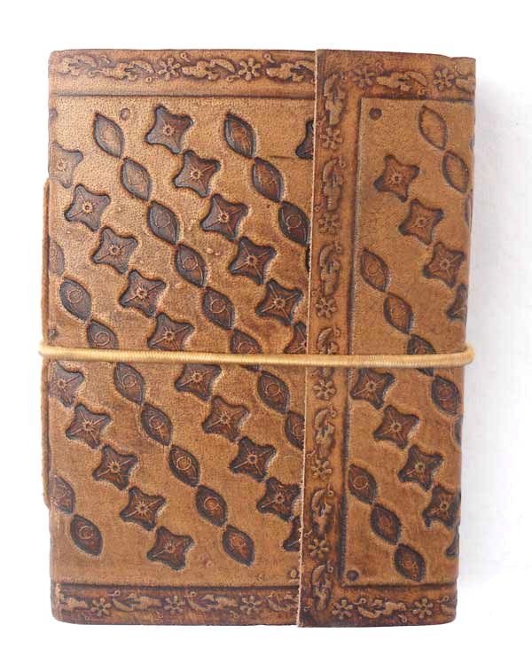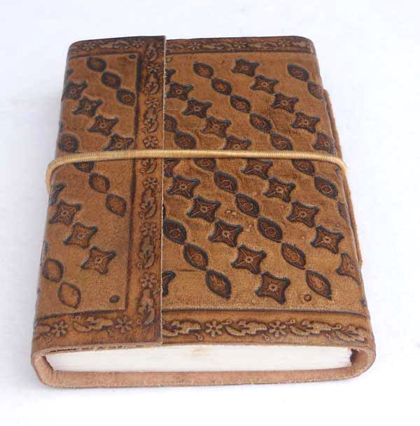 Finest quality of goat TC leather with an debossed design all over the leather cover. Later on the leather is water color dyed by expert artisans in a way that debossed design looks like ‘carved’ ones in antique fashion! The abrasion effect of leather cover makes the journal very exclusive! Inside is 72 cotton recycled paper sheets (144 pages) which is acid free, wood free and handmade. Never bleeds with ink pen!
