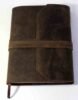 Brown natural refillable leather journal inside lined printed sheets.