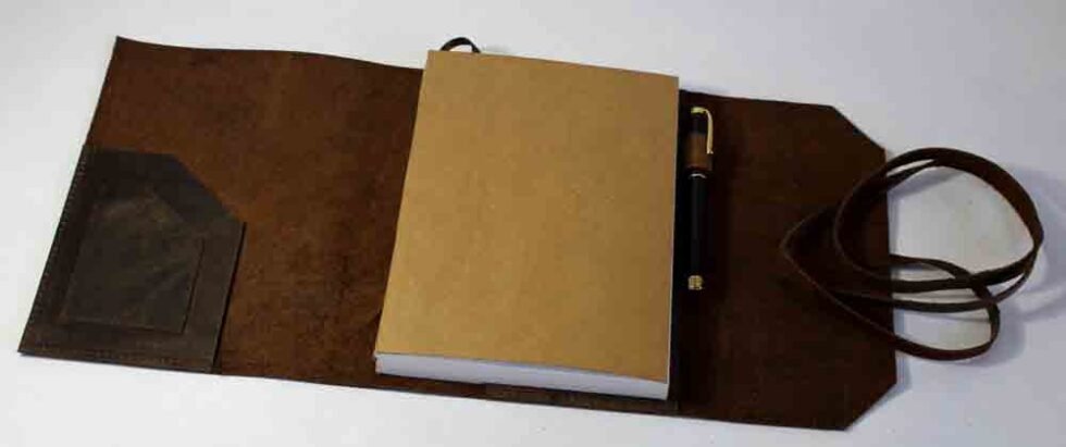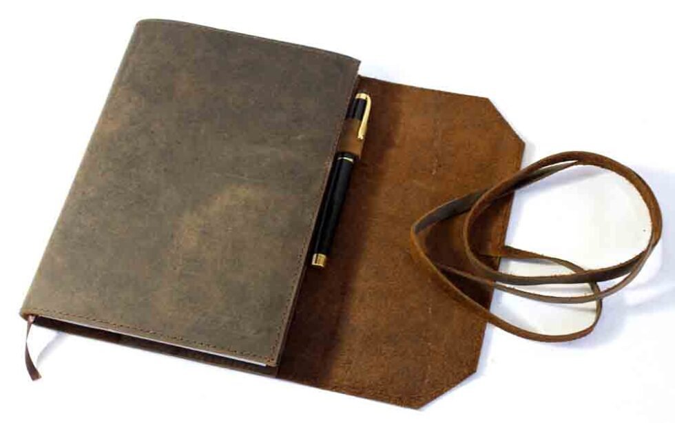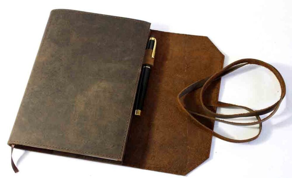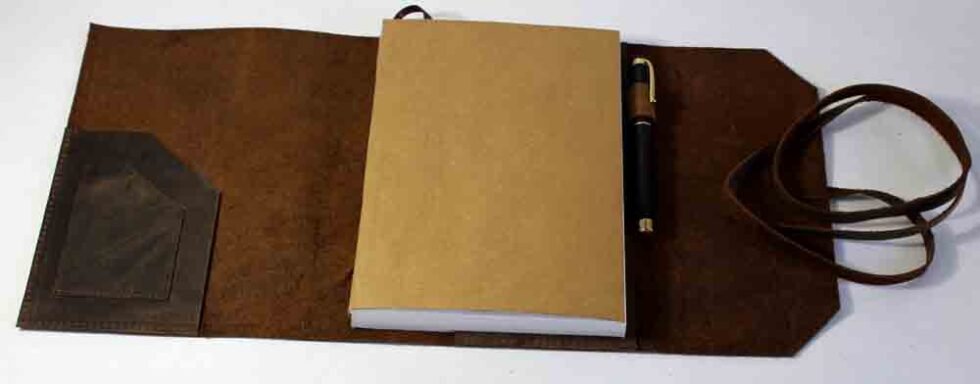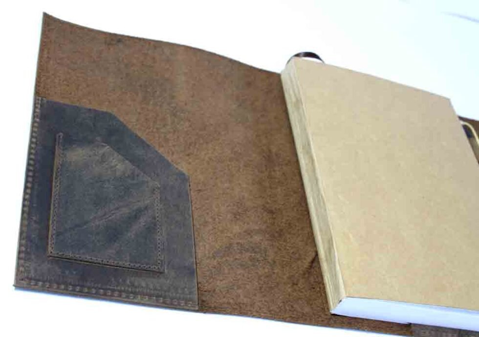 Genuine supple brown natural buffalo leather journal with 100 sheets / 200 pages of mill made 115 GSM line printed paper. A refillable journal once the inside papers are fully used up – as we do provide the same insert. Inside the front cover, a pocket for credit cards is given. At the back cover inside, a pen loop is provided with a small leather flap closure to protect the sheets inside. This journal is a special gift and a different kind of exclusive corporate gift!