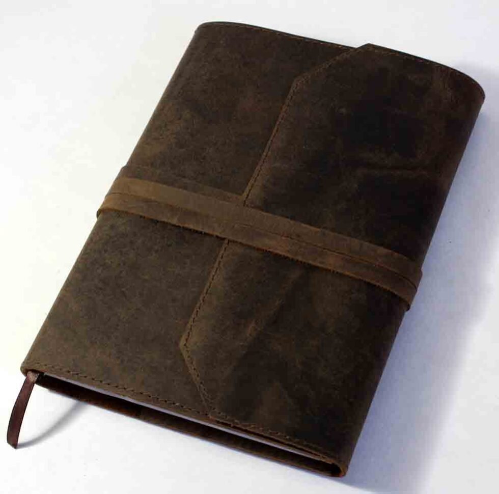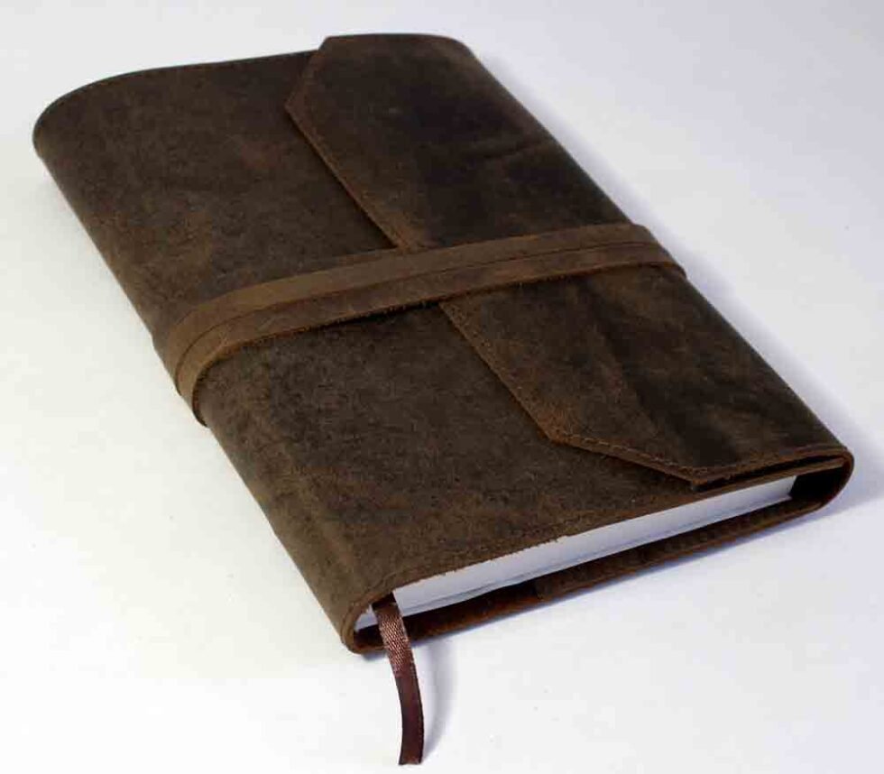 Genuine supple brown natural buffalo leather journal with 100 sheets / 200 pages of mill made 115 GSM line printed paper. A refillable journal once the inside papers are fully used up – as we do provide the same insert.