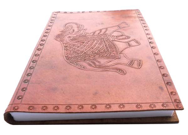 Goat TC leather embossed design all over. Later on the leather is dyed by expert artisans by pigment colors. A good customized journal with printed logo on the paper as well as embossed logo on the inside leather pocket. Inside is 72 cotton recycled paper sheets (144 pages) which is acid free, wood free and handmade. Never bleeds with ink pen!
