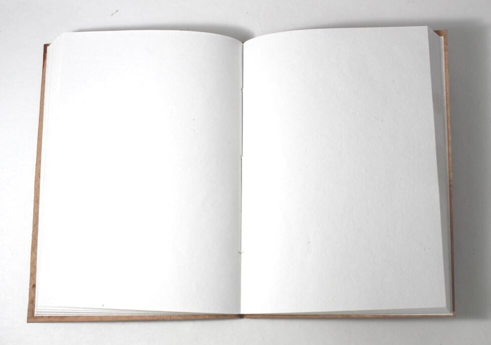 Embossed Goat TC leather journal with custom logo, 144 handmade recycled pages, acid-free and ink-friendly.