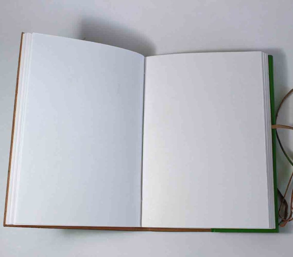 Fine quality of goat TC leather. Hand bound journal with 72 sheets / 144 pages of recycled cotton handmade papers. Absolutely wood free, acid free. Does not bleed when using ink pen.
