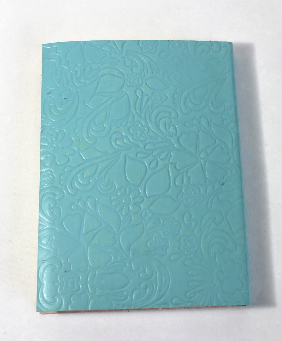 Finest quality of goat TC leather with an embossed floral design all over the leather cover. Later on the leather is pigment colour dyed by expert artisan. Inside is 48 cotton recycled paper sheets (96 pages) which is acid free, wood free and handmade. Never bleeds with ink pen!