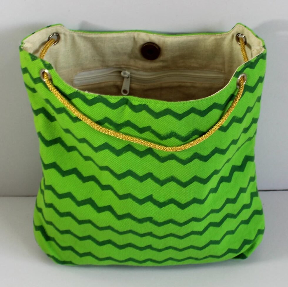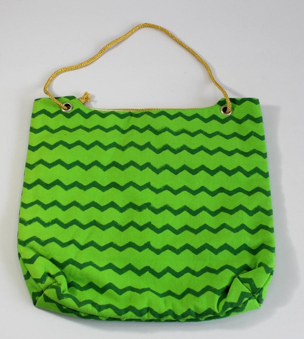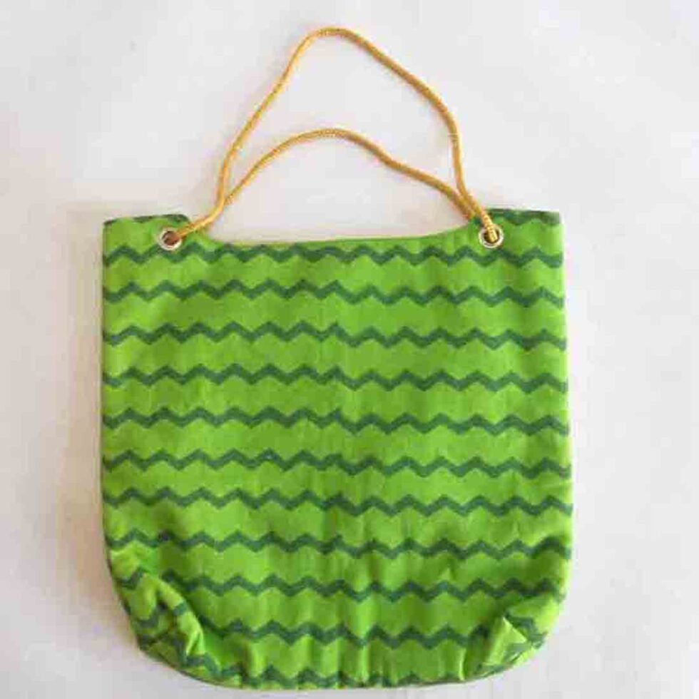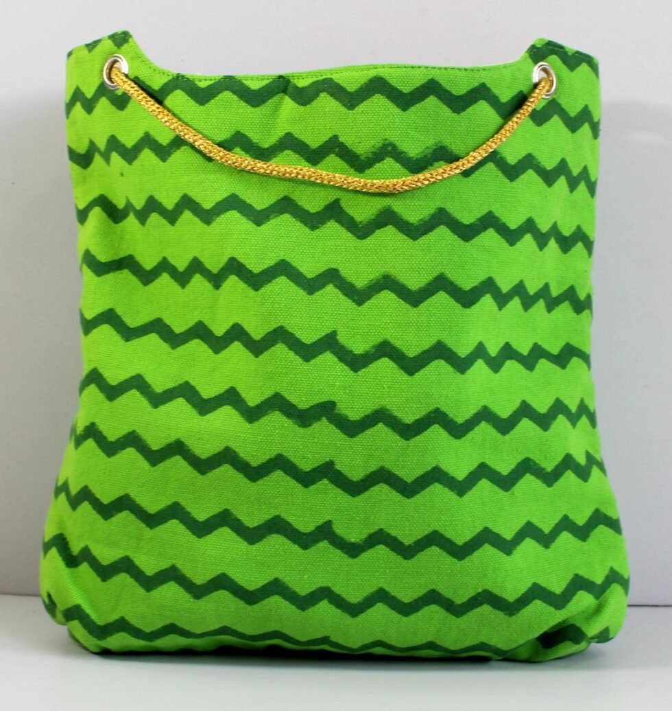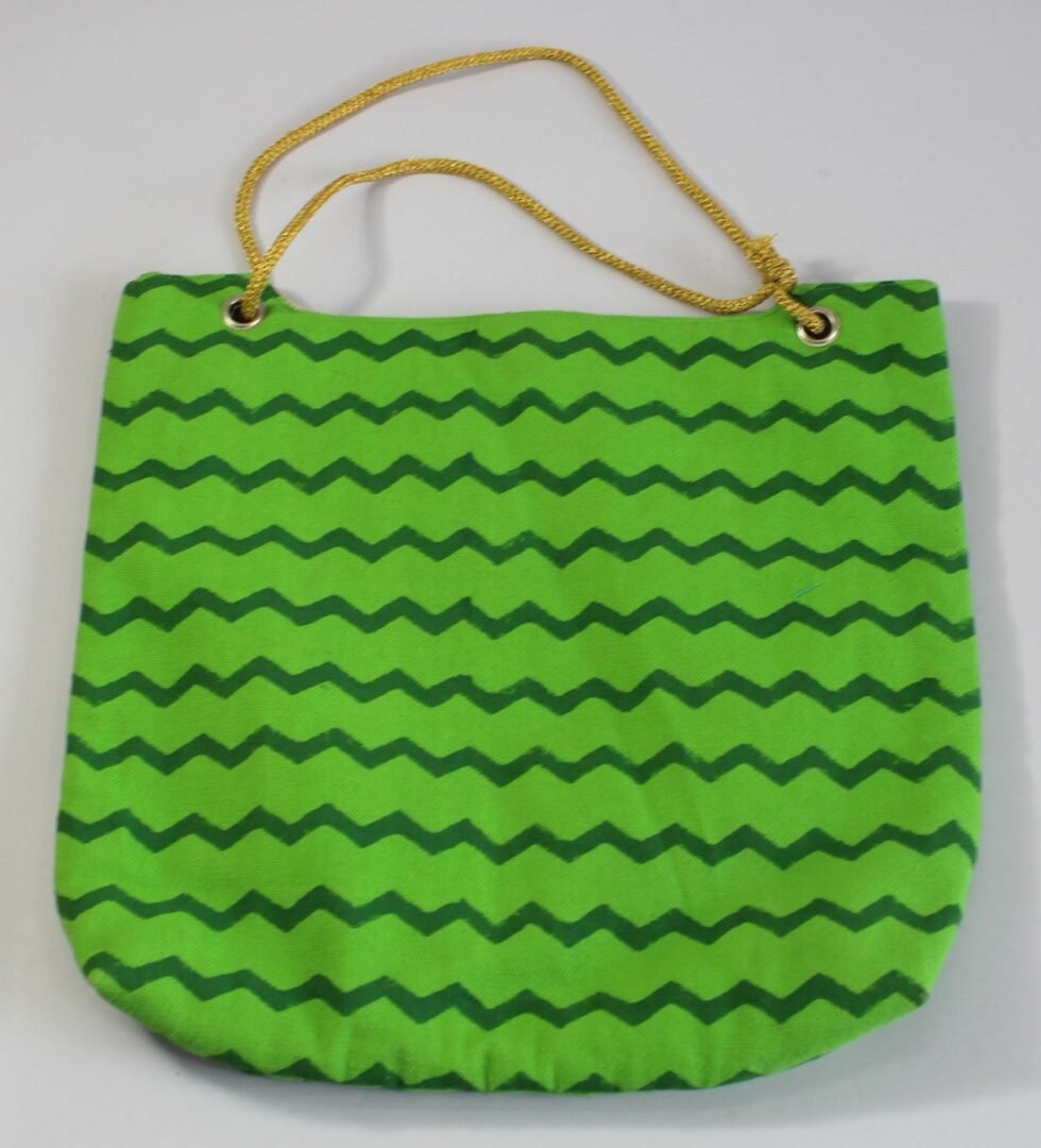 Be the first to review “Green color printed canvas bag with metallic golden cord handles bag”