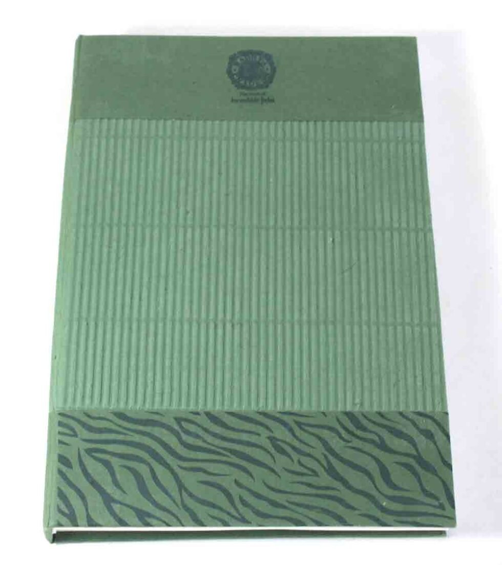 Hard cover notebook with 90 sheets / 180 pages of recycled cotton handmade paper inside. Lovely paper to write upon, totally wood free, acid free and never bleeds even when written upon by an ink / fountain pen. A beautiful hand crafted notebook with multiple prints / job works on cover paper to make it a beautiful present for many occasions.