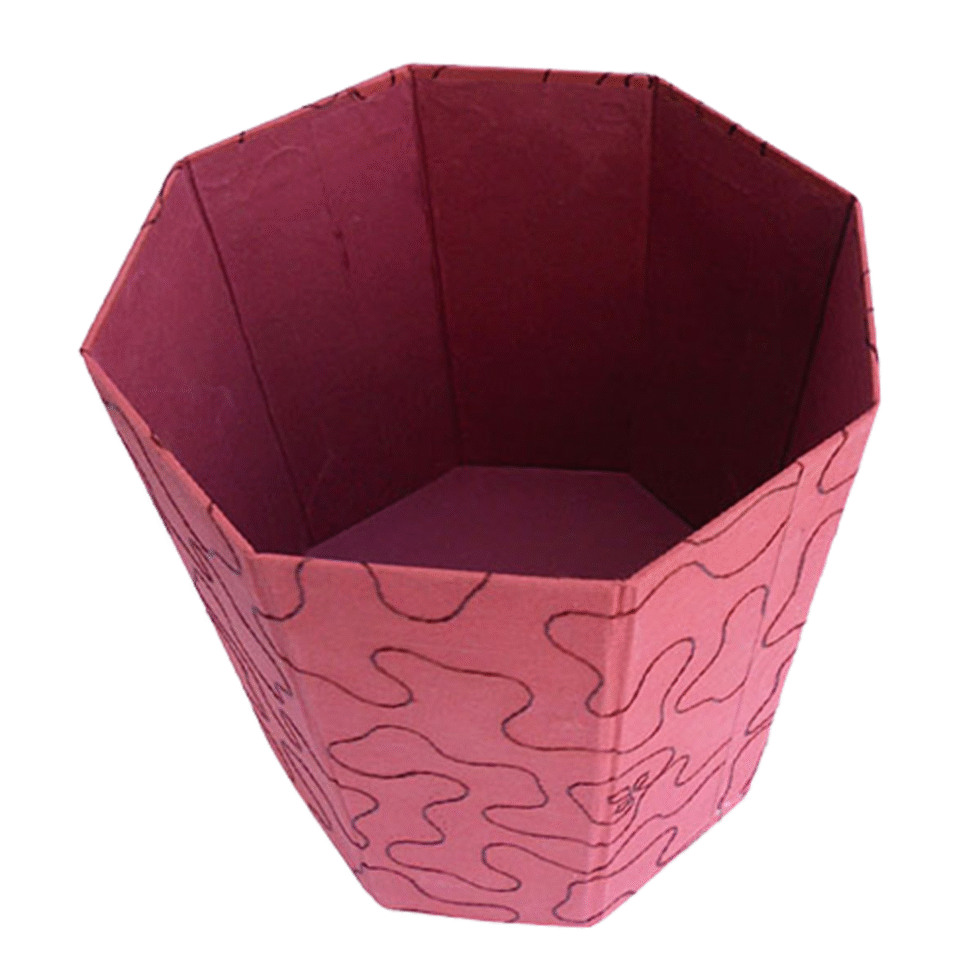 Recycled cotton handmade paper dustbin with the help of solid card boards. An exclusive green life style product for home decore or official use. Can be a useful corporate gift. The dustbin comes flat and is solid, sturdy yet totally collapsible. Easy to transport and store in a limited space!